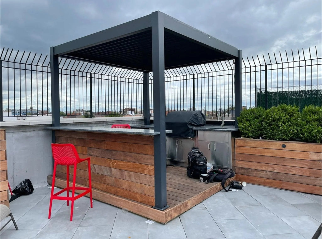 Villa Pergola - 13x13 ft. Aluminum Motorized Louver Pergola with Lighting